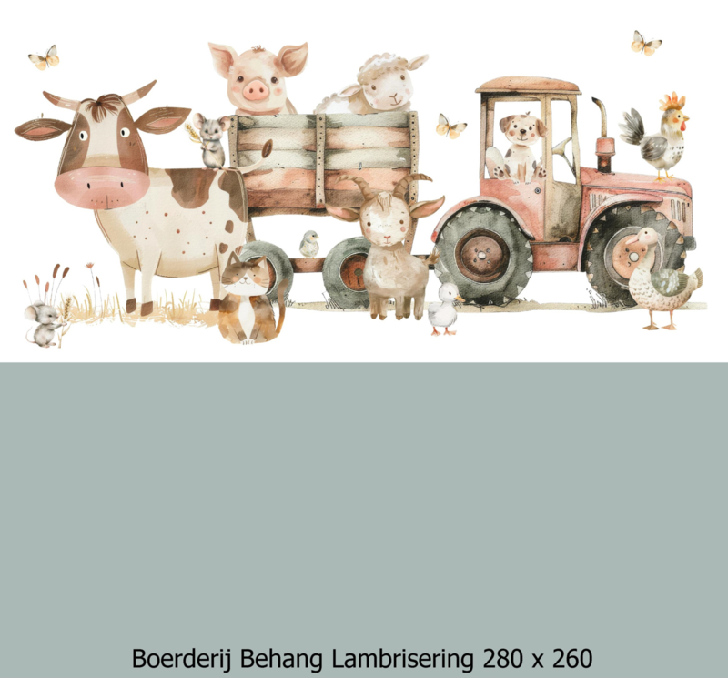 Breng de charme van het platteland naar de kinderkamer met dit unieke boerderij behang welke wij op maat voor je kunnen maken.